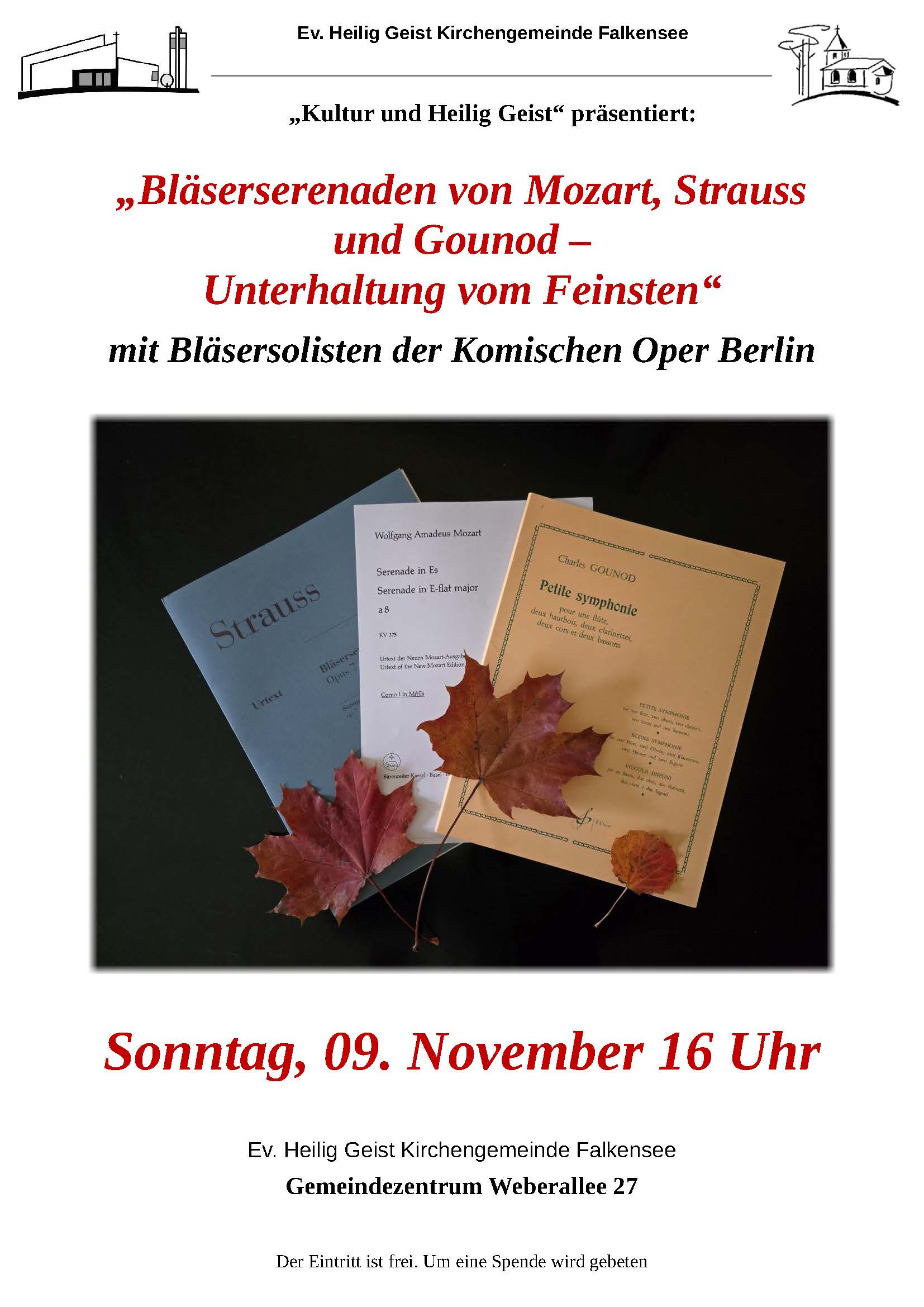 mit Bläsersolisten des Orchester der Komischen Oper Berlin im Gemeindezentrum mit zahlreichen Anklang statt.