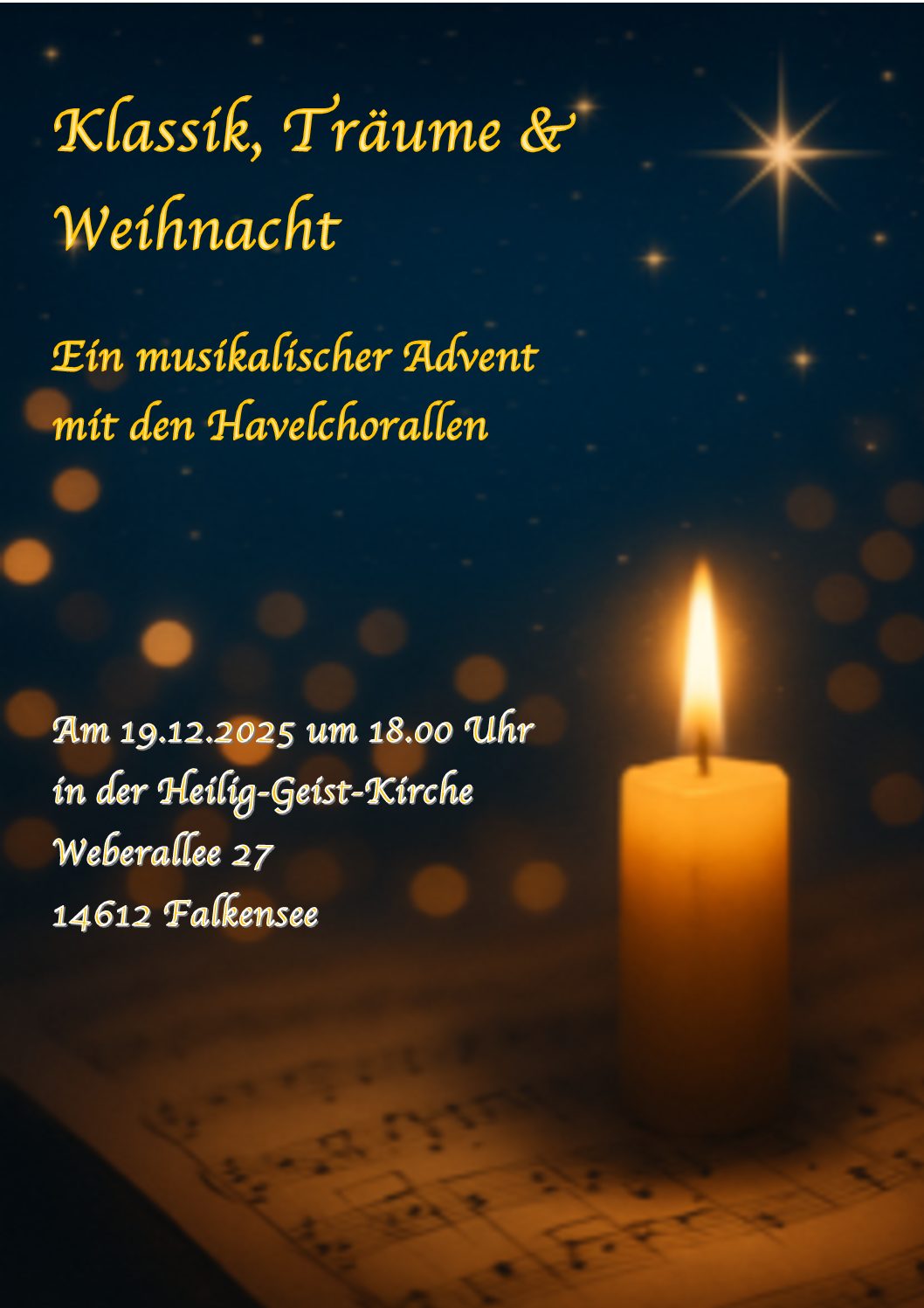 Am 19.12.2025 18:00 Uhr geben die „Havelchorallen“ ein Konzert unter dem Motto „Klassik, Träume & Weihnacht“ (17.12. Probe)