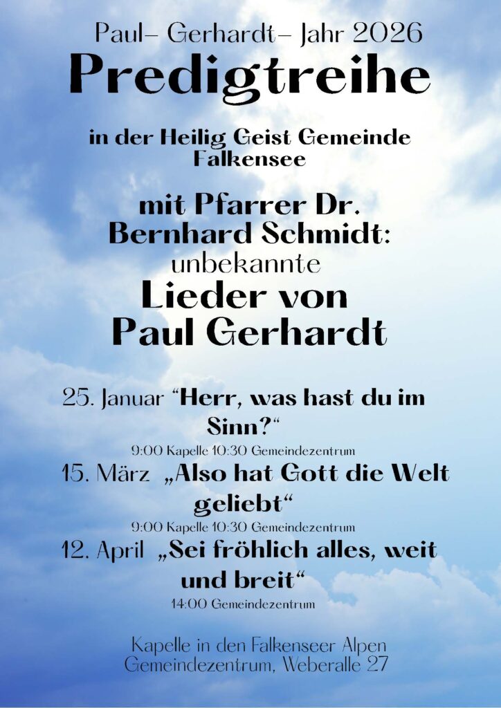 Im Jahr 2026 begehen wir den 350. Todestag des großen evangelischen Liederdichters Paul Gerhardt (1607-1676).